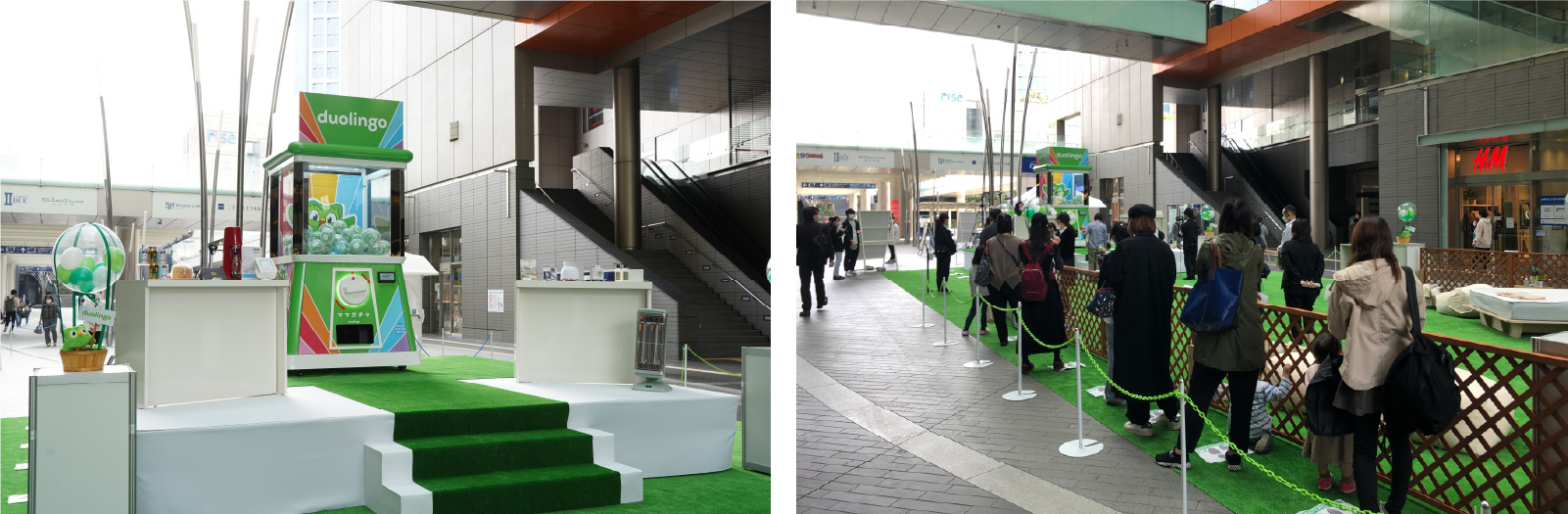 世界でユーザー数5億人を突破した無料語学アプリ「Duolingo」を運営するDuolingo Inc. (本社所在地:Pittsburgh, USA)は、ママにワクワクを届けるため、世界初のママ専用巨大ガチャマシーン「ママガチャ」を開発し、家庭文化の日である11月2日(火)に11社の賛同企業協力のもと、二子玉川ライズにて「ママガチャ」を体験できるイベントを実施するため、巨大ガチャ「モンスターカプセル」を導入いただきました。
