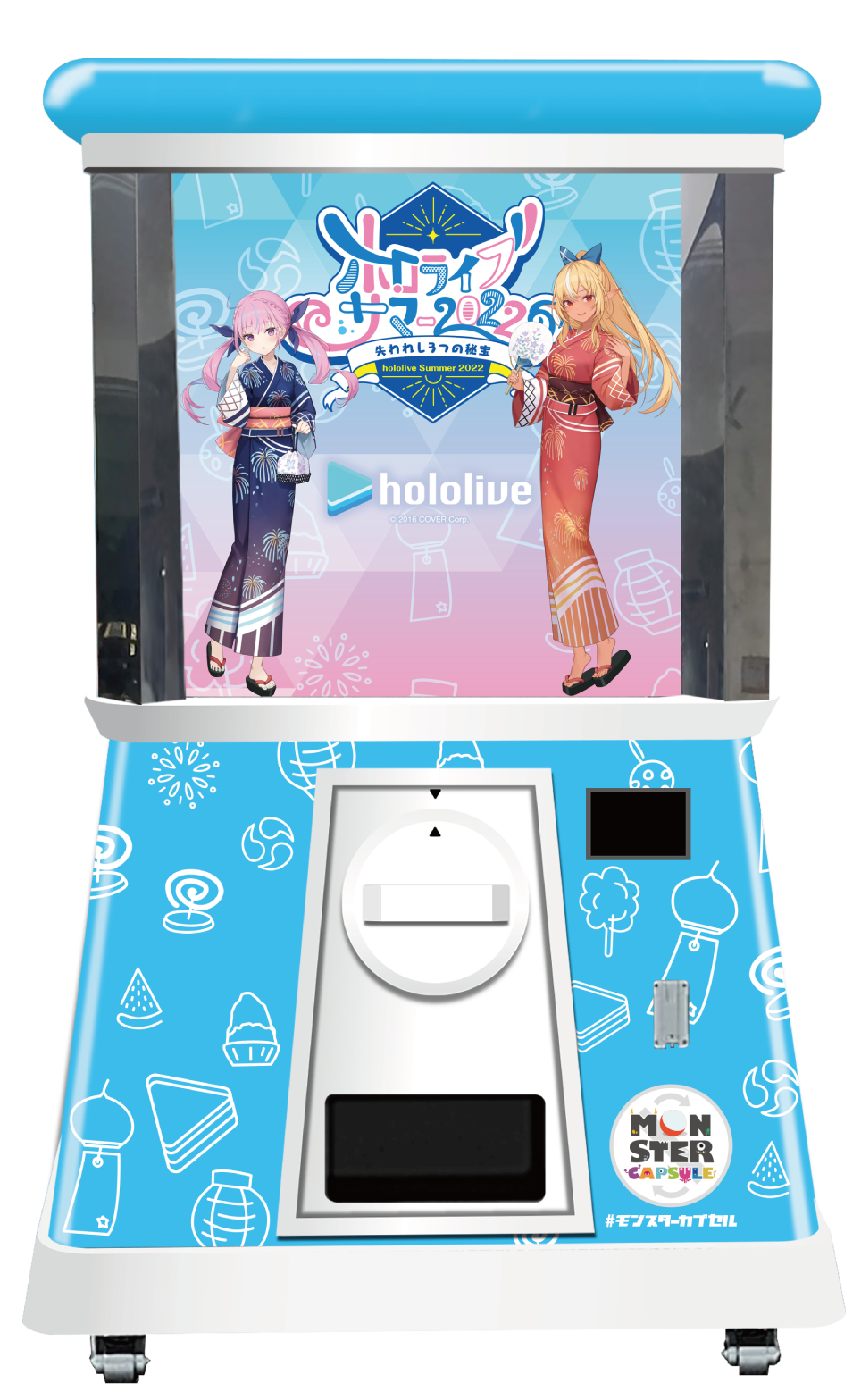 今回のイベントに使用する浴衣イラストは、イコモチ先生の描き下ろしとなっております。巨大ガチャ「モンスターカプセル」は巨大カプセルすいか割りのアトラクションとして導入頂きました。