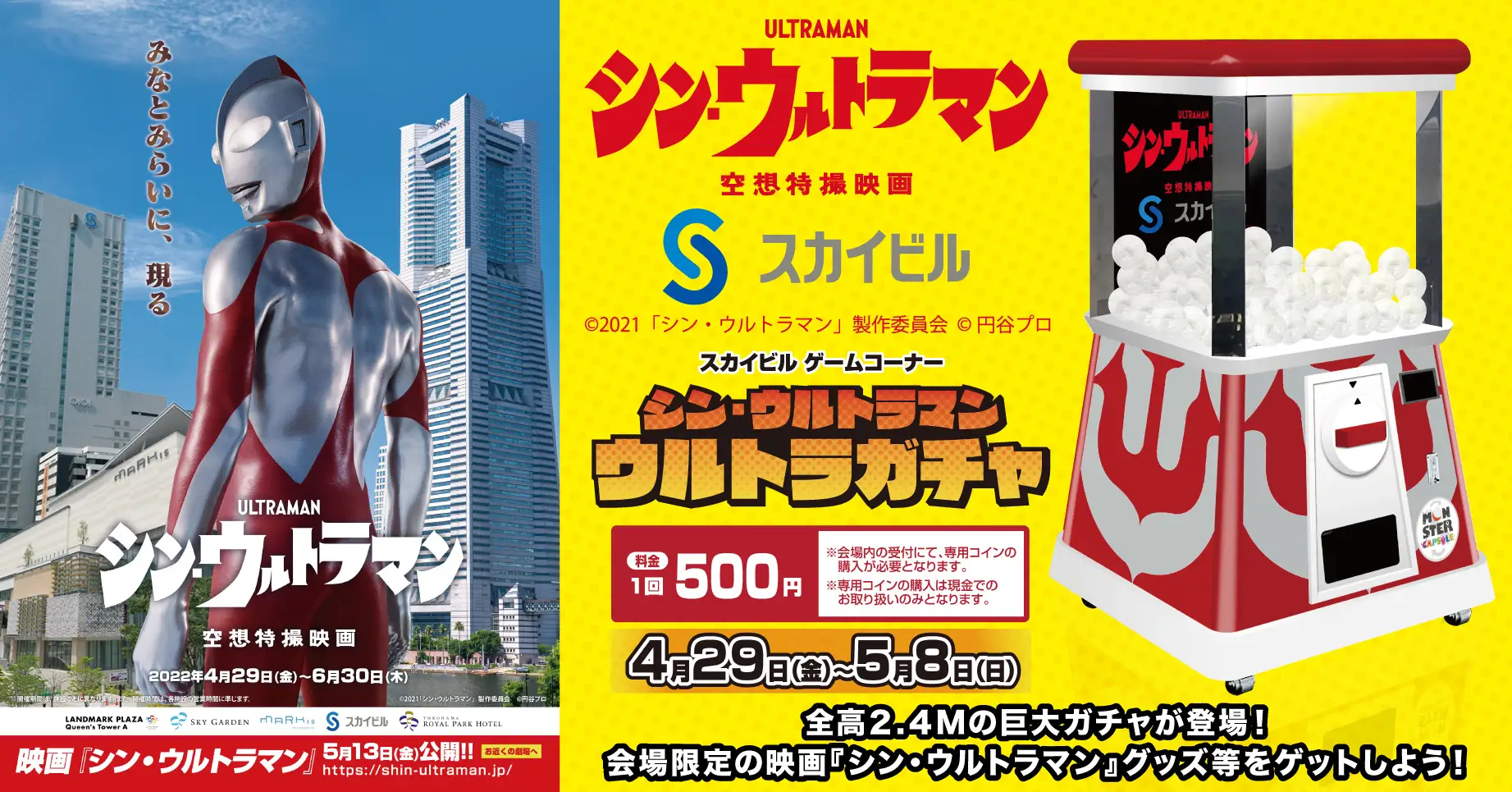 みなとみらいエリア スカイビルに「シン・ウルトラマン ウルトラ巨大ガチャ」が登場!