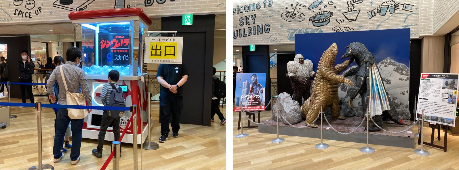 スカイビル10F吹き抜けには、巨大なアトラクションが登場。見上げるほど大きな『シン・ウルトラマン』デザインのガチャガチャを回して、素敵な景品をゲットしよう。